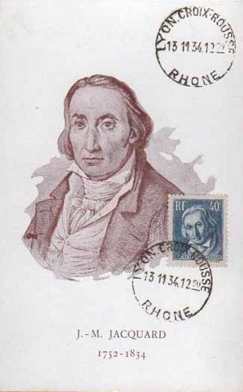 | Description | Centenaire de la mort du tisseur Joseph-Marie Jacquard (1752-1834), né à Lyon |