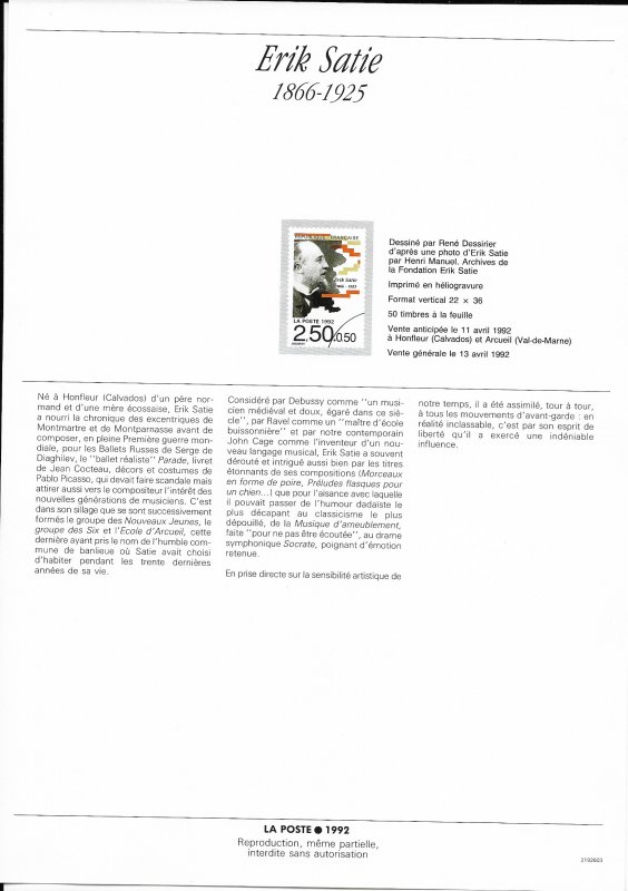 | Description | Erik Satie (1866-1925), compositeur et pianiste, né à Honfleur |