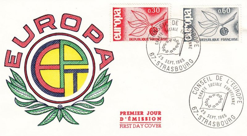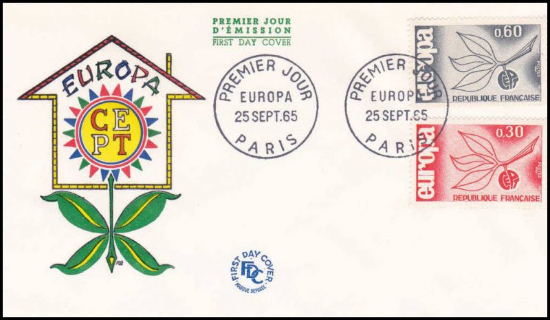 | Commentaire | Chaque mois de septembre depuis 1956, un petit symbole se glisse discrètement dans les enveloppes européennes : Europa, l’émission philatélique qui, timbre après timbre, tente de dessiner un continent uni... à défaut d’être toujours d’accord. En 1965, on fête la dixième édition. Une date un peu magique dans l’inconscient collectif, le genre de moment où on se retourne pour voir ce qu’on a bâti. Et il y a de quoi regarder : d’un noyau de six pays (la fameuse CECA), on est passé à une vingtaine, rassemblés sous la bannière de la C.E.P.T., cette conférence qui chapeaute les Postes et Télécoms d’un continent en pleine recomposition. Autriche, Portugal, Turquie, même l’Islande ! (tiens, justement, c’est un artiste islandais — Hoerdur Karlsson — qui signe l’image du millésime 65 : un rameau à trois feuilles portant un fruit… allégorie sobre, mais chargée d’espoir). Ce n’est pas rien, quand on y pense. À peine vingt ans après un continent dévasté, des nations s’associent pour imprimer ensemble une série annuelle de timbres. Pas juste un geste esthétique, mais un vrai message politique — discret, consensuel, élégant. Et puis symbolique, toujours. Le timbre de 1960 par exemple montrait une charpente commune, celui de 1962 une roue à rayons convergents... des idées en image, en somme. Alors bien sûr, on est loin des grandes déclarations de Rome ou de Strasbourg. Mais l’air de rien, ces émissions Europa racontent à leur manière l’envie de faire bloc, de se parler, de se répondre. Une Europe par la Poste avant d’être une Europe politique. Bizarre, non ? Et si, dans cinquante ans, on les relisait comme les archives visuelles d’un rêve commun ? WikiTimbres |