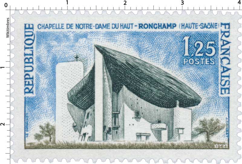 | Commentaire | Ronchamp : là où béton et prière s’épousent Si tu passes un jour dans le coin de Ronchamp, entre Lure et Belfort, tu risques de lever les yeux et de te demander : mais qu’est-ce que c’est que cet ovni posé sur la colline ? Bienvenue à Notre-Dame du Haut, un des plus beaux (et audacieux) paris architecturaux du XXᵉ siècle. À l’origine, il y avait là une chapelle bien classique, ravagée deux fois : par la foudre, puis par la guerre. En 1950, pour tout reconstruire, on ose une idée folle : appeler Le Corbusier. Oui, le Corbu — l’homme qui croyait que béton et poésie pouvaient marcher main dans la main. Résultat ? Une église qui n'a rien d’une cathédrale traditionnelle : murs bombés, toit en forme de carapace de crabe, clocher improbable... De quoi surprendre même les plus ouverts d'esprit. Et pourtant, quand tu entres, tout prend sens. L’alternance subtile d’ombre et de lumière guide naturellement vers le recueillement. Le Corbusier l’avait dit : "un lieu de silence, de paix, de prière". Et entre nous, il faut un certain culot (et pas mal de talent) pour transformer du béton brut en élan spirituel… Tiens, détail sympa : la seule gargouille de la façade ouest est volontairement unique, comme un clin d’œil aux imperfections humaines. Aujourd'hui, Notre-Dame du Haut est une icône mondiale de l'architecture sacrée moderne. Comme quoi, même un matériau aussi froid que le béton peut, entre de bonnes mains, donner naissance à quelque chose d’étonnamment... vivant. WikiTimbres |
