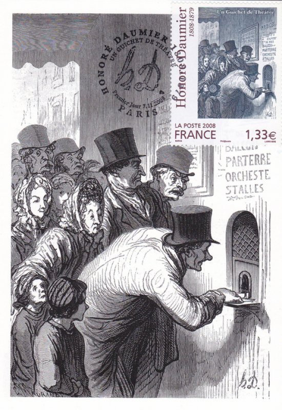 | Description | Un guichet de théâtre œuvre d'Honoré Daumier (1808-1879), graveur, caricaturiste et peintre, né à Marseille |