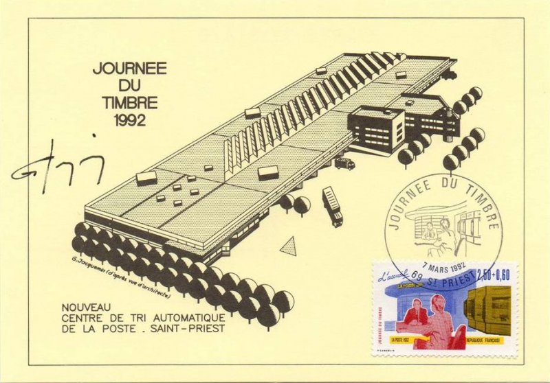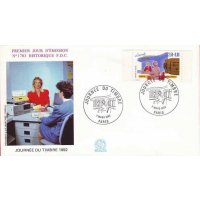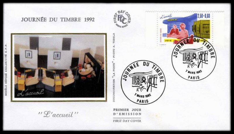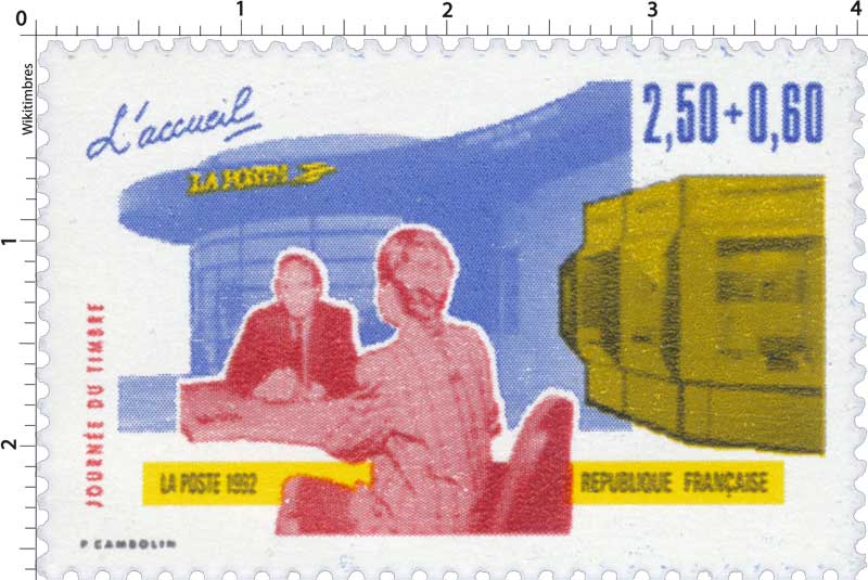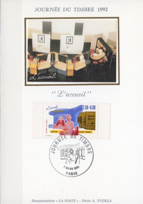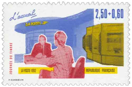 | Description | Journée du Timbre 1992. Les Métiers de la Poste, l'accueil |