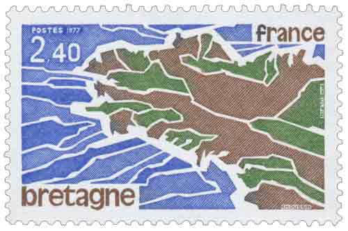 | Commentaire | Ce timbre appartient à la série consacrée aux régions administratives françaises et s’inscrit dans le contexte de la réforme territoriale engagée au début des années 1970, visant à donner une visibilité nouvelle aux grandes régions de France. Ce timbre évoque la Bretagne dans sa configuration administrative de l’époque, rassemblant l’Ille-et-Vilaine, le Morbihan, les Côtes-du-Nord et le Finistère autour de Rennes, affirmée comme métropole régionale. Le choix iconographique privilégie une représentation volontairement abstraite du territoire, sans repères anecdotiques ni symboles folkloriques, traduisant une volonté institutionnelle de dépasser les images traditionnelles pour mettre en avant une région moderne, structurée et dynamique. Ce timbre met ainsi en valeur la forme géographique singulière de la Bretagne, caractérisée par ses côtes profondément découpées et son rapport intime à la mer, élément fondateur de son identité économique et culturelle. À la fin des années 1970, la Bretagne connaît en effet une transformation profonde de son tissu productif, tout en conservant un socle agricole et maritime majeur à l’échelle nationale, notamment dans les domaines de l’élevage, des primeurs et de la pêche. Ce timbre suggère également l’équilibre recherché entre développement industriel, modernisation des infrastructures et préservation d’un cadre de vie reconnu pour la diversité de ses paysages et de ses patrimoines. Par son graphisme fragmenté, ce timbre symbolise la mosaïque des terroirs bretons, terrestres et maritimes, et traduit la continuité entre traditions régionales et mutations contemporaines. Cette émission illustre la place accordée par la politique postale française à la représentation des régions comme composantes essentielles de l’aménagement du territoire et de l’identité nationale dans la France de la fin du XXe siècle. Article rédigé pour WikiTimbres. |