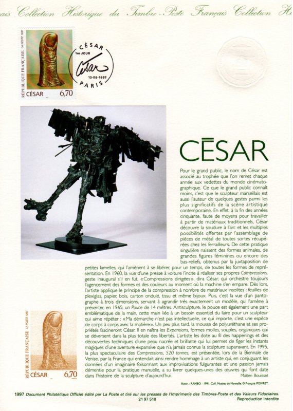 | Description | Le pouce œuvre de César (1921-1998), sculpteur, né à Marseille |