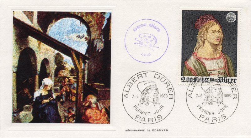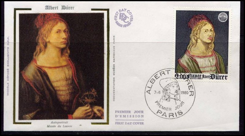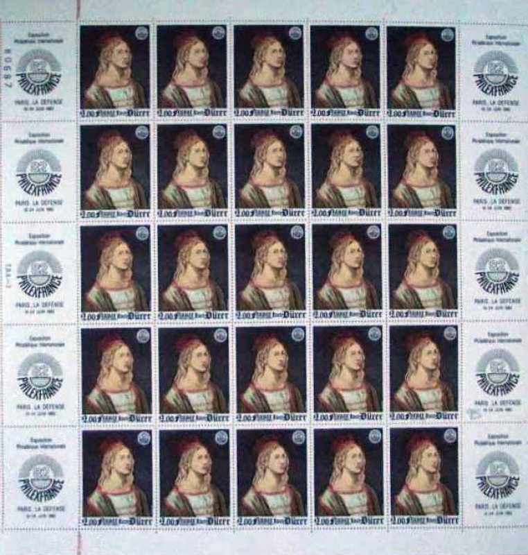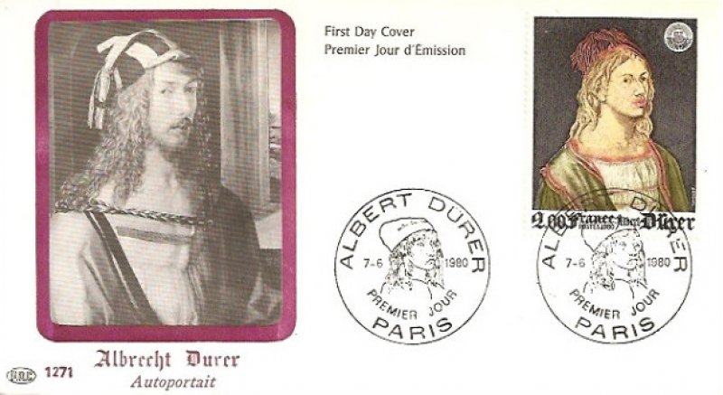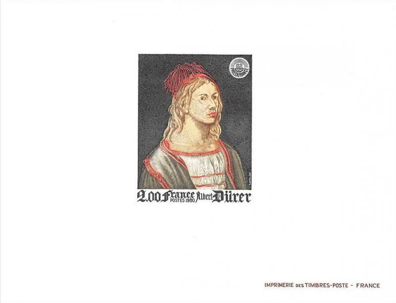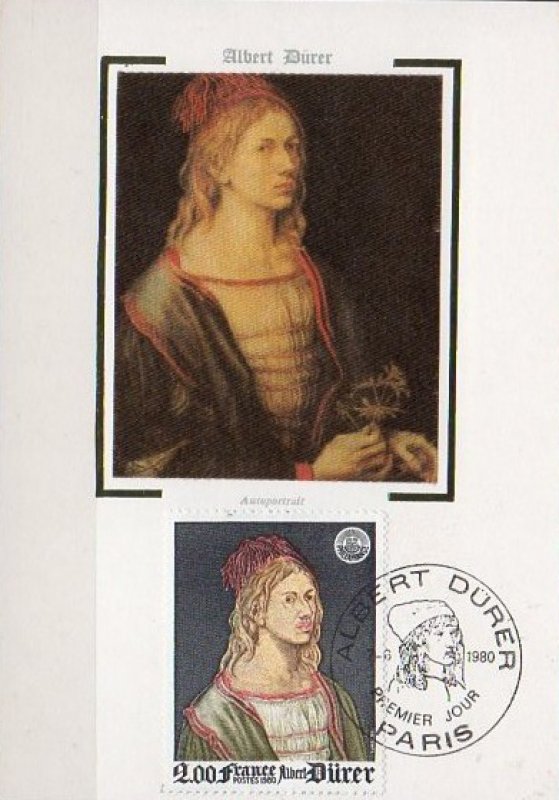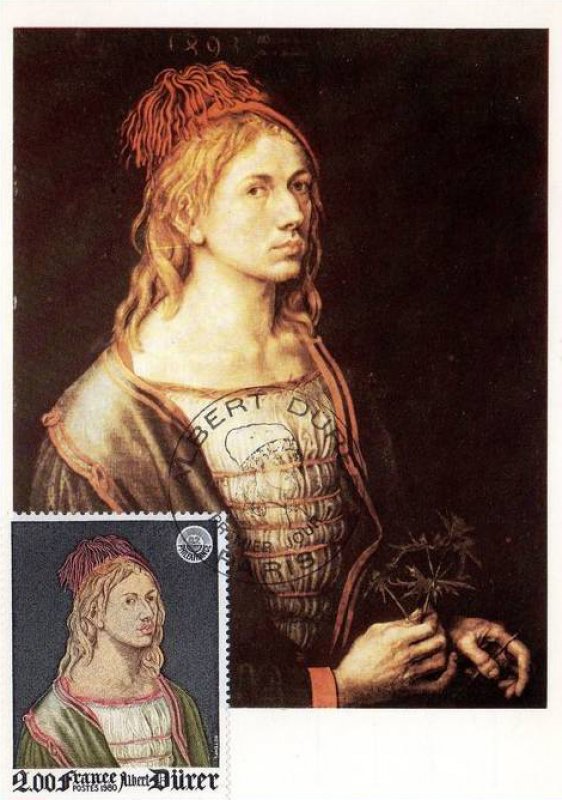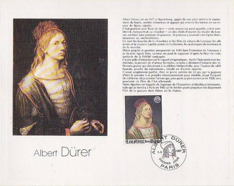 | Description | PhilexFrance 82. Exposition philatélique internationale, Et représentation de l'autoportrait d'Albrecht Dürer (1471-1528) peint en 1493 et exposé au musée du Louvre |