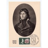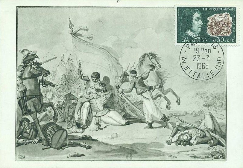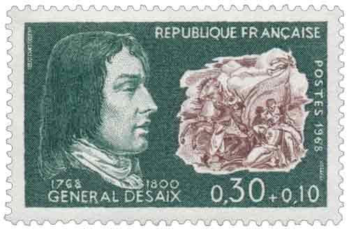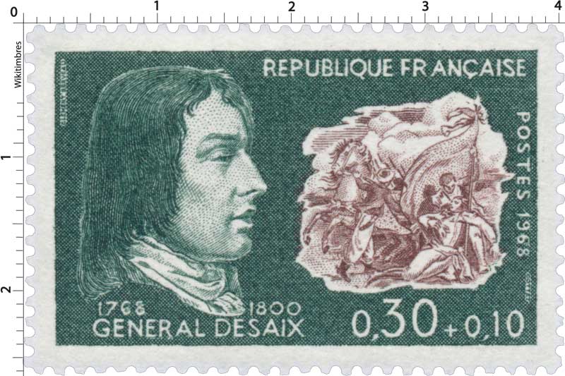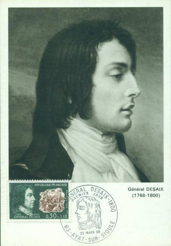 | Commentaire | Il y a des gars dont on retient à peine le nom, mais qui ont quand même changé le cours des choses. Desaix, par exemple. Pas aussi connu que Napoléon, mais sans lui, Marengo, ce serait peut-être un désastre oublié au fond d’un manuel. Né en Auvergne, dans un coin paumé avec un nom à rallonge (Louis Charles Antoine Des Aix de Veygoux – oui, rien que ça), il entre dans l’armée à 15 ans. Pas vraiment pour la frime : c’est un bosseur, un gars droit, du genre à préférer l’action au blabla. Il grimpe les échelons vitesse grand V pendant la Révolution. Et c’est pas parce qu’il a des pistons — c’est juste qu’il sait y faire. Sur le Rhin, en Égypte… partout où il passe, il laisse une trace. Une trace de feu, souvent, mais toujours avec cette réputation de “Sultan juste”. Un surnom donné par les Égyptiens eux-mêmes, c’est dire. Et puis y’a ce moment dingue. Marengo, 14 juin 1800. Les Français sont en train de se faire balayer, Bonaparte commence à envisager la retraite. Et là, surgit Desaix, genre cavalier de western mais version sabre au clair. Il retourne la bataille. Littéralement. Une heure plus tard, les Français ont gagné. Sauf que lui… il ne rentre pas. Il prend un boulet en pleine poitrine. Net. Fin du film. Bonaparte, lui, est bouleversé. Il ne balance pas une simple médaille à titre posthume. Non. Il parle de faire des Alpes le piédestal du tombeau de son ami. Un truc grandiose, presque mystique. Bon, il ne l’a pas vraiment fait, mais l’intention suffit à comprendre à quel point Desaix comptait. Bref. Un soldat modeste, un chef respecté, un héros fauché juste avant l’ovation. Comme une lumière qui s’éteint pile au moment où on allait l’applaudir. WikiTimbres |