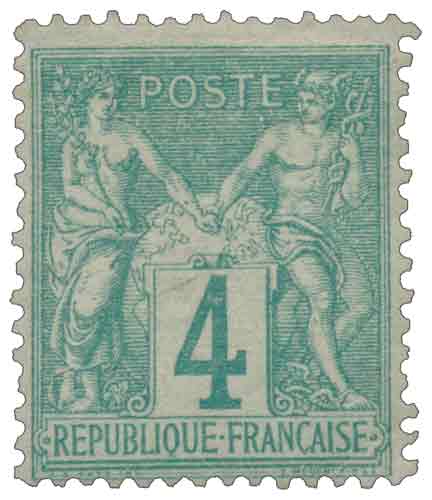 | Commentaire | Sage. Type I (N sous B). Retrait fin 1877 En savoir plus sur Wikipédia : Type sage ou allégorie de la Paix et le Commerce s’unissant Le 4 centimes vert, n°63, appartient au type I de la première émission Sage et fait partie des treize valeurs définies par le décret du 5 juillet 1875, qui réorganise entièrement la gamme des timbres courants. Bien que imprimé dès mars 1876, il n’est mis en vente qu’à la fin du mois de novembre, l’administration souhaitant d’abord écouler les importants stocks du 4c Cérès encore disponibles. Cette valeur, associée aux affranchissements réduits ou combinés, s’intègre dans la nouvelle logique tarifaire instaurée sous la IIIe République. Sa nuance vert soutenu offre une distinction claire par rapport aux autres faibles valeurs de la série, conformément aux prescriptions du décret de 1875 destinées à éviter toute confusion dans l’usage postal. Comme pour l’ensemble du type Sage, le dessin retenu — une allégorie du Commerce et de la Paix unis — provient du concours national lancé en août 1875. Le type I se reconnaît à la position de la signature « J A SAGE INV », où le N apparaît sous le B de « RÉPUBLIQUE ». Le n°63 illustre ainsi la transition progressive entre les dernières émissions Cérès et l’installation durable du type Sage comme série de référence. |