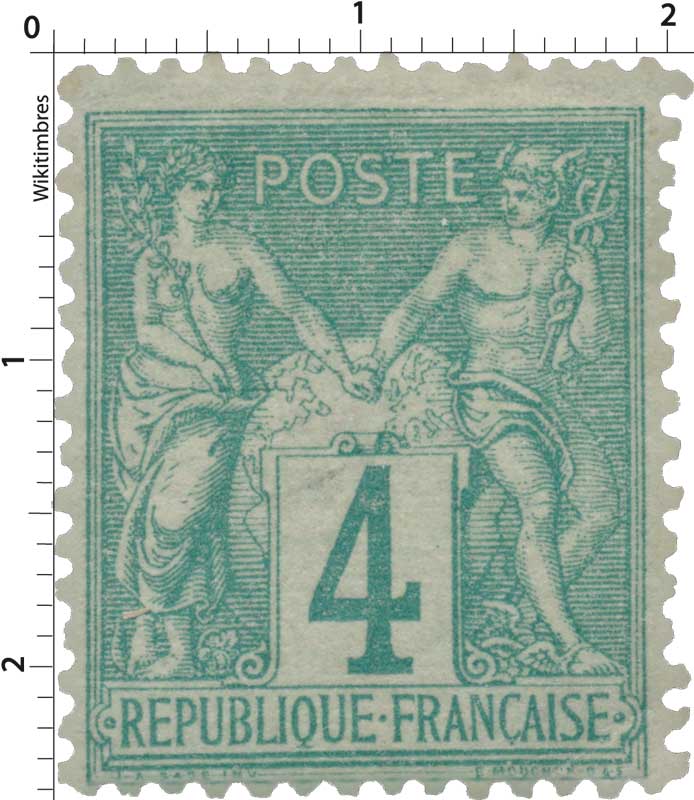Le 4 centimes vert, n°63, appartient au type I de la première émission Sage et fait partie des treize valeurs définies par le décret du 5 juillet 1875, qui réorganise entièrement la gamme des timbres courants. Bien que imprimé dès mars 1876, il n’est mis en vente qu’à la fin du mois de novembre, l’administration souhaitant d’abord écouler les importants stocks du 4c Cérès encore disponibles.