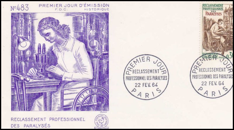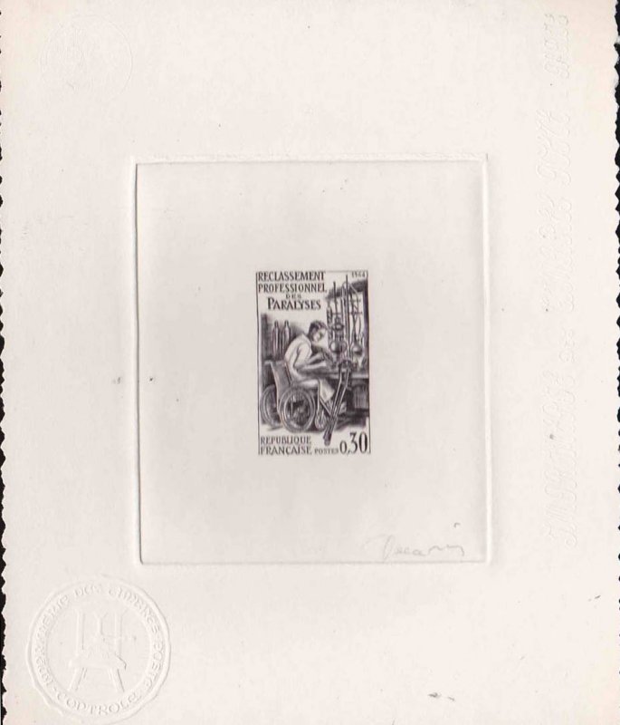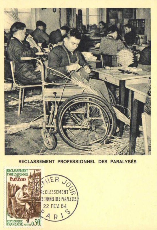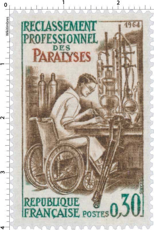 | Commentaire | Pendant longtemps, les paralysés ont été laissés sur le bord du chemin, comme si la vie active leur était à jamais fermée. En 1964, la Poste décide de leur rendre hommage en mettant à l’honneur leur reclassement professionnel, une cause à la fois discrète et essentielle. Il a fallu du temps — et beaucoup d’obstination — pour faire entendre la voix de ceux que la maladie, les accidents ou des malformations avaient mis en marge. Avant la loi de 1957, portée par l’élan des associations et l’évolution des mentalités, peu de portes s’ouvraient. Mais ce texte, souvent appelé "la charte du travail pour l’invalide civil", change la donne : il affirme haut et fort que toute personne, même lourdement handicapée, a droit à un emploi adapté. C’est une révolution silencieuse ! Et mieux : en 1962 et 1963, des décrets rendent obligatoire leur intégration dans les entreprises ordinaires. Tiens, anecdote savoureuse : dès les années 60, certains ateliers protégés ressemblaient presque à des ruches, où, entre pièces de montres et impressions textiles, des travailleurs handicapés prouvaient qu’avec un peu d’ajustement, tout était possible. Aujourd’hui encore, certains se souviennent de ces débuts avec une fierté non dissimulée. Alors oui, l'époque moderne a facilité les choses : mécanisation, ergonomie, logiciels… Mais ce qui fait la vraie différence, ce n’est pas la technique. C’est cette certitude tenace que l’on vaut quelque chose, même quand le corps a dit non. Et ça, amigo mío, c’est un sacré message pour le futur. WikiTimbres |