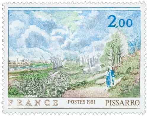 | Commentaire | À travers cette émission consacrée à Camille Pissarro, ce timbre s’inscrit dans la tradition française de mise en valeur des grandes œuvres picturales conservées dans les collections publiques, en l’occurrence La Sente du Chou, peinte en 1878 et conservée au musée de la Chartreuse de Douai. Le choix de cette toile renvoie à une période de pleine maturité artistique de Pissarro, alors installé à Pontoise, au moment où se structure le mouvement impressionniste autour d’artistes partageant une approche commune du travail en plein air et de l’observation directe de la nature. Ce timbre évoque une vision de la peinture éloignée de toute idéalisation décorative, privilégiant les chemins modestes, les terres cultivées et les lisières végétales, thèmes récurrents chez Pissarro et emblématiques de son attachement à la vie rurale. L’œuvre reproduite se distingue par une recherche d’équilibre chromatique fondée sur des valeurs nuancées, où les tons se répondent sans contrastes violents, traduisant une conception exigeante et réfléchie de la couleur. Dans le contexte philatélique de 1981, cette émission participe à la série dite du « Musée imaginaire », qui propose une circulation postale d’œuvres majeures de l’histoire de l’art, contribuant à leur diffusion auprès d’un large public. Ce timbre témoigne également de la reconnaissance institutionnelle d’un peintre souvent considéré comme l’un des pères de l’impressionnisme, non seulement par son œuvre personnelle, mais aussi par son rôle de soutien et de formateur auprès de plusieurs artistes de sa génération. Par cette émission, la politique postale française associe ainsi patrimoine artistique, mémoire culturelle et usage quotidien du courrier, inscrivant l’héritage de Pissarro dans un cadre à la fois national et universel. Article rédigé pour WikiTimbres |