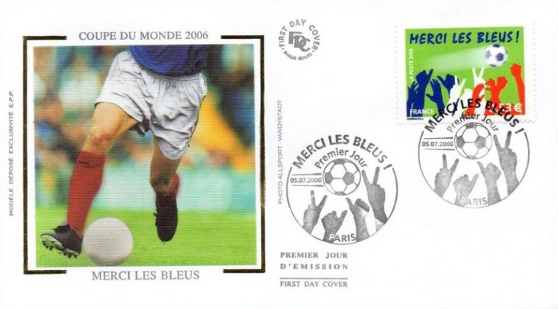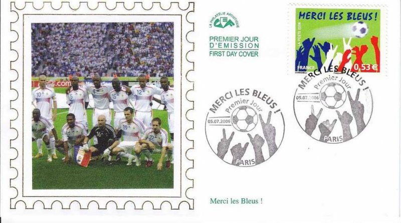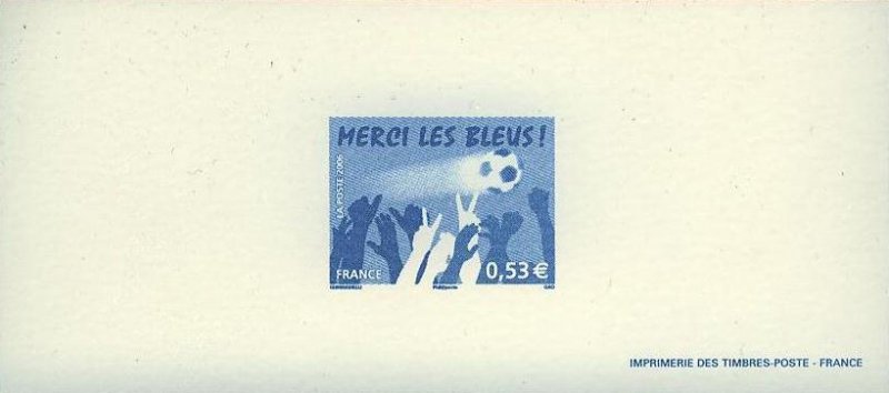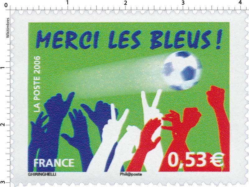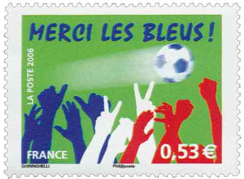| Description | Sport. Football. Merci les Bleus. Pour saluer la qualification de l'équipe de France de football en finale de la coupe du monde de 2006, en Allemagne |