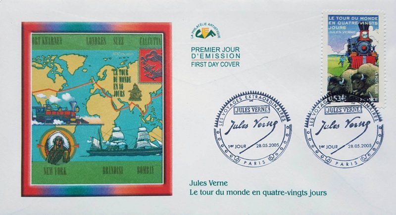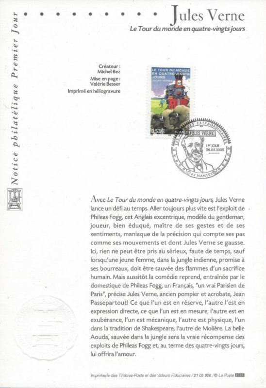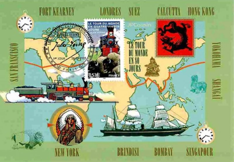 | Description | Le tour du monde en 80 jours, de l'écrivain Jules Verne (1828-1905), né à Nantes (Loire-Atlantique) |