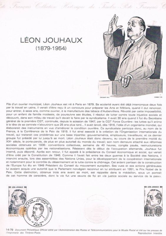 | Description | Léon Jouhaux (1879-1954), syndicaliste et secrétaire général de la CGT, né à Paris |