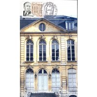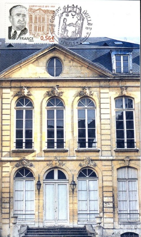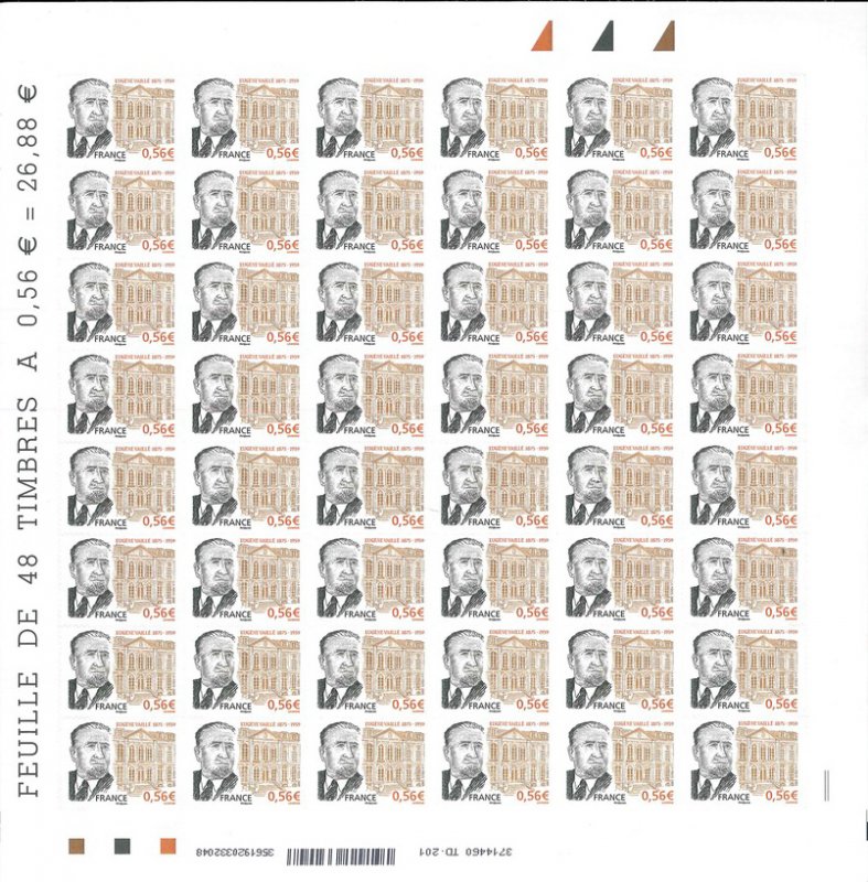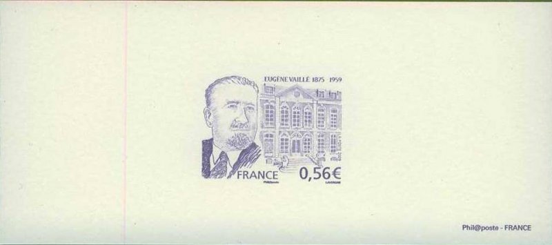 | Commentaire | Existe également en autoadhésif. La mise en vente anticipée a lieu le 19 septembre au musée de La Poste à Paris, et les 19 et 20 septembre dans sa ville natale de Bédarieux. Les mêmes jours, le cachet sans mention « premier jour » est également disponible lors de l'exposition philatélique Visuel : commémoration du cinquantenaire de la mort d'Eugène Vaillé (1875-1959), fonctionnaire des Postes et premier conservateur du Musée postal de France, né à Bédarieux (34-Hérault) - L'hôtel de Choiseul-Praslin, construit en 1722 pour la comtesse de Choiseul par l'architecte Sulpice GAUBIER (111-117, rue de Sèvres, Paris 6ème) abrita le musée postal lors de sa création en 1946, jusqu'en 1973, année à laquelle il fut transféré sous le nom de Musée de la Poste, avenue de Vaugirard (Paris 14ème) et inauguré le 18 décembre 1973. |