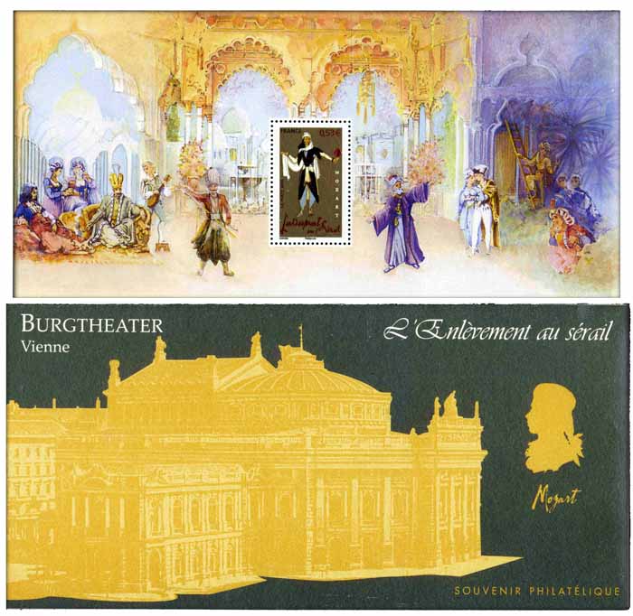 | Description | Personnages célèbres. Les opéras de Mozart. T.P. de même date imprimé sur feuillet de 205x95. (3917) L'enlèvement au sérail (costume de Varona 3917) |
