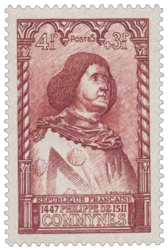 | Commentaire | Émis en France en 1946 dans la série « Célébrités du XVe siècle », ce timbre gommé rend hommage à Philippe de Commynes, figure majeure de la pensée politique et de l’historiographie de la fin du Moyen Âge, reconnu pour ses Mémoires, témoignage capital sur le règne de Louis XI et les débuts de l’État moderne. Dessiné et gravé en taille-douce par Gabriel-Antoine Barlangue, le timbre propose un portrait sobre et expressif, conforme à l’iconographie savante des émissions culturelles de l’après-guerre. Mis en vente générale le 28 octobre 1946, il est destiné à l’affranchissement de la lettre double pour l’intérieur et comporte une surtaxe au profit de l’Entraide française, illustrant la double vocation mémorielle et sociale de cette série. Par son sujet, l’émission inscrit la philatélie française dans une démarche de transmission intellectuelle, Commynes étant souvent considéré comme l’un des premiers analystes lucides du pouvoir politique en Europe occidentale. Une information historiquement établie rappelle que ses Mémoires, rédigées à la fin du XVe siècle, ont exercé une influence durable sur la conception moderne de l’histoire et de la diplomatie, faisant de Philippe de Commynes une référence incontournable du patrimoine littéraire et politique. |