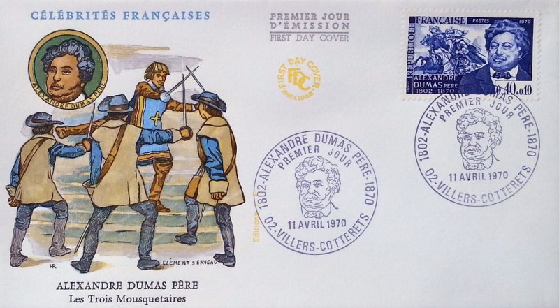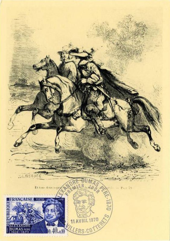 | Description | Alexandre Dumas père, écrivain (1802-1870), né à Villers-Cotterêts (Aisne), représentation des trois mousquetaire et du célèbre gascon d'Artagnan |