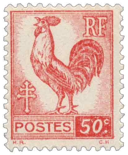 | Commentaire | Timbre gommé de France émis en 1944, le Coq d’Alger 50 c rouge s’inscrit dans la série provisoire du Gouvernement provisoire de la République française destinée à rétablir un service postal fonctionnel après la Libération. Conçu dans le contexte particulier de la fin de l’Occupation, ce timbre reprend un symbole fort de l’identité nationale, le coq gaulois, associé à la croix de Lorraine et au monogramme « RF », affirmant clairement le retour de la légitimité républicaine. D’abord utilisé en Corse à partir de l’été 1944, puis diffusé sur l’ensemble du territoire métropolitain dès novembre, il répond à un besoin précis d’affranchissement des imprimés pour l’étranger au premier échelon de poids, usage cohérent avec sa valeur faciale de 50 centimes. L’impression est assurée à Alger par l’imprimerie Typo-Litho Carbonnel selon un procédé lithographique simple et robuste, choisi pour permettre une production rapide en grande quantité dans un contexte logistique et politique encore instable. |