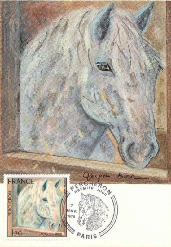 | Description | Percheron, croisement avec des chevaux de la région du Perche située au sud de la Normandie. Œuvre de Jacques Birr, ingénieur et peintre, né en 1920, à Paris |