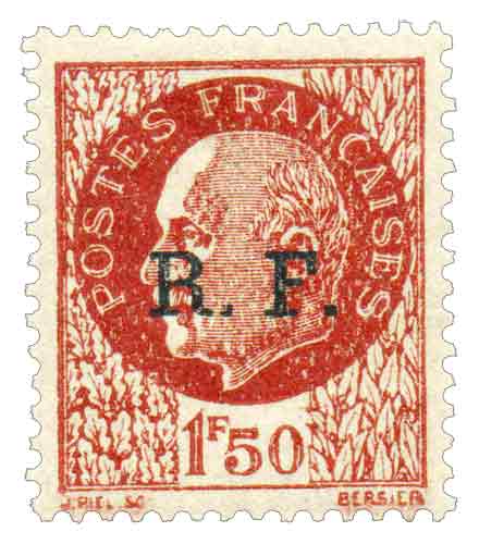 | Description | Maréchal Pétain, type Bersier, surcharge R.F. Type II |