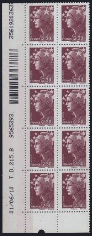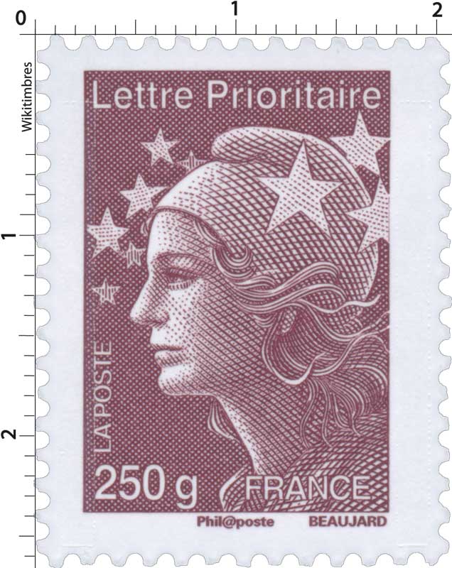 | Commentaire | Existe également en autoadhésif. Leur visuel évolue donc légèrement. Chaque timbre reçoit une mention “Ecopli”, “Lettre prioritaire”, “Monde” ou “Europe” en haut à gauche. Le poids autorisé s’inscrit en bas à gauche. La mention “France” bascule de gauche à droite. Les tarifs Ecopli 50 g et Europe 50 g disparaissent. La Marianne Ecopli 20 grammes abandonne sa couleur verte au profit d’un gris moyen. De plus, elle perd le fond de couleur du timbre pour faciliter sa reconnaissance par les machines de tri. Les Marianne de la monnaie (0,01 €, 0,05 €, 0,10 € et 1,00 €) sont inchangées et toujours disponibles. À partir du 1er juillet, ces nouvelles Marianne sont émises en planches, roulettes, carnets et planches autocollantes |