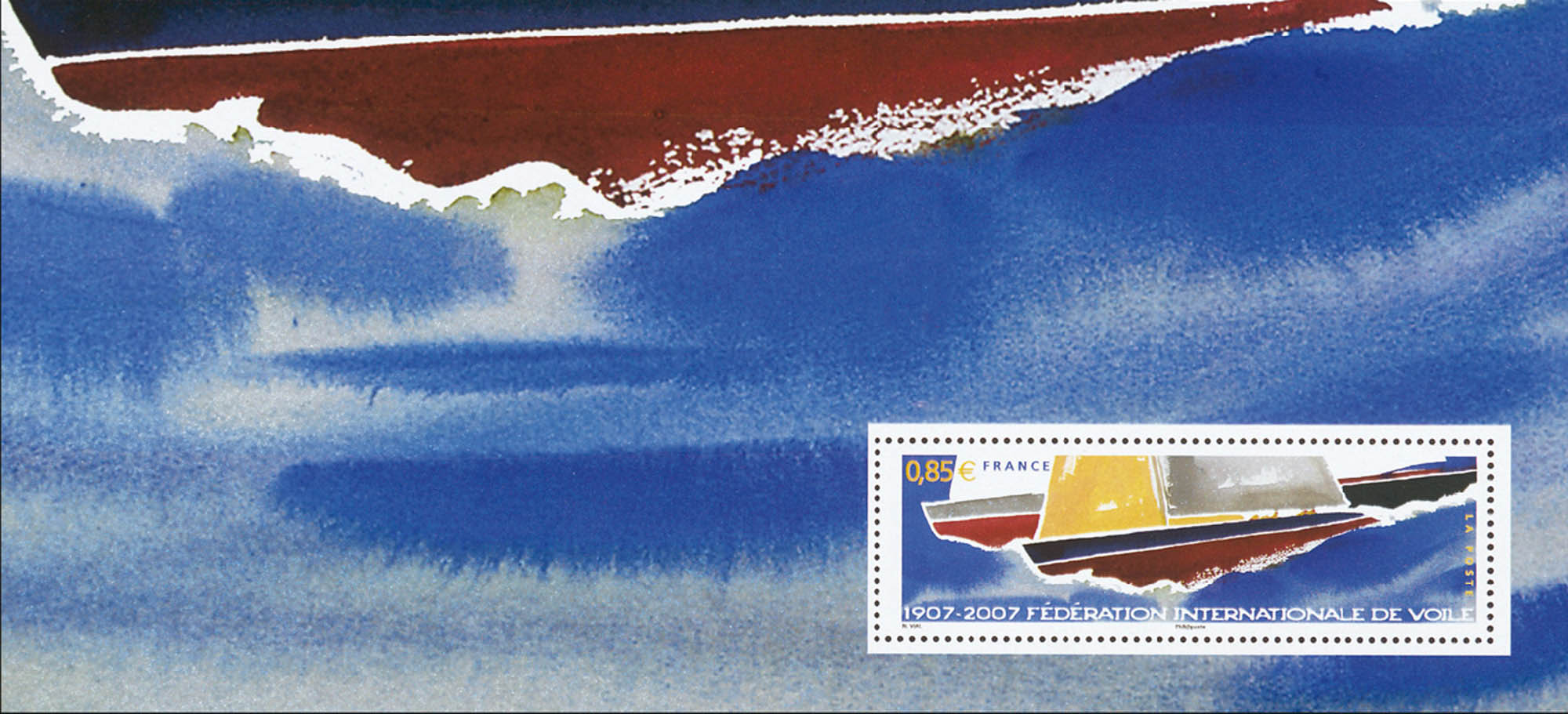 | Commentaire | Fédération Internationale de Voile. SOUVENIR PHILATÉLIQUE Le bloc gommé représente un élément du voilier figurant sur le timbre, quant à la couverture du souvenir elle a également été illustrée avec des voiliers rappelant ceux du timbre. |