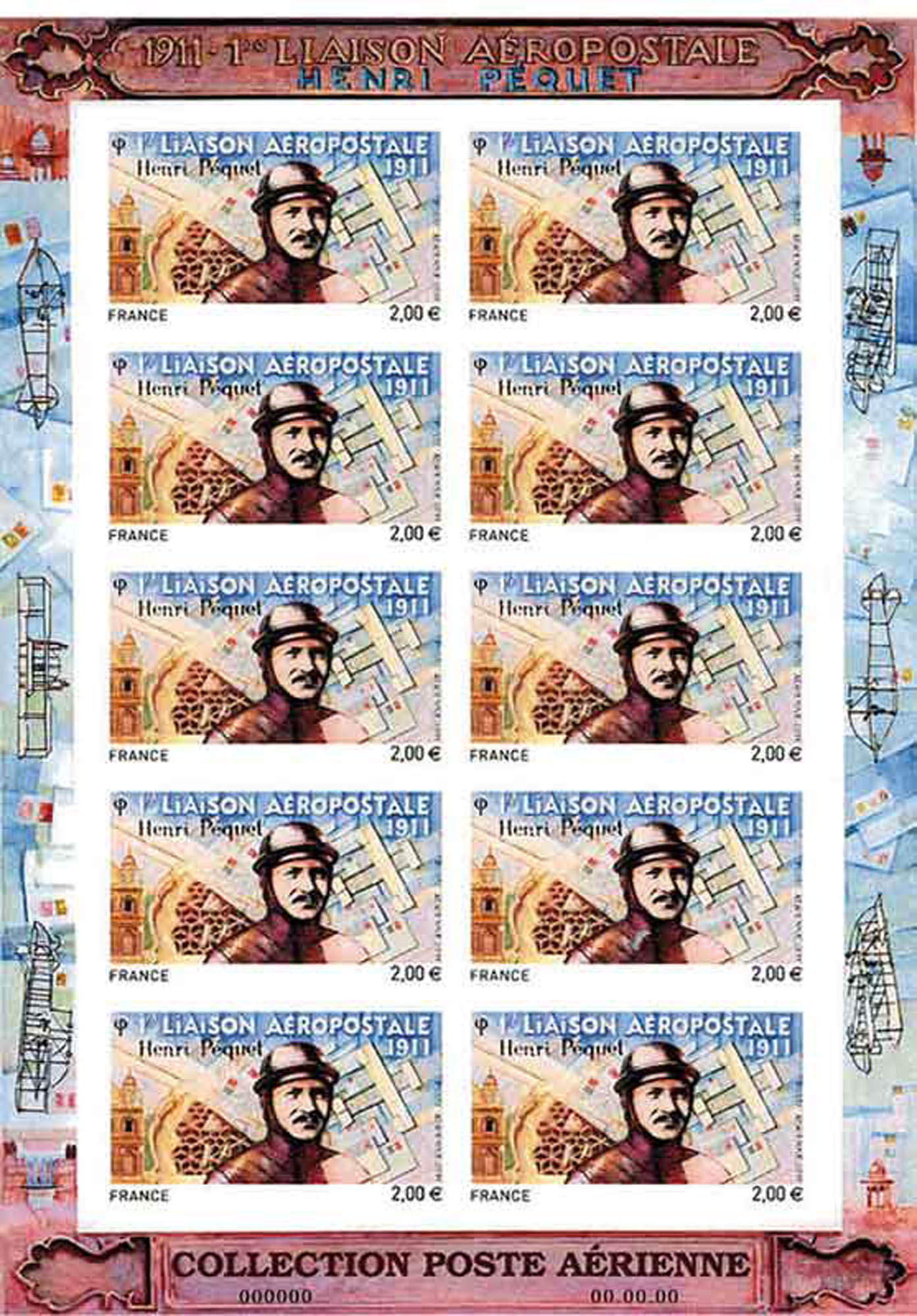 | Description | Mini feuille Poste aérienne - Henri Péquet (1888-1974), aviateur, né à Bracquemont (Seine-Maritime) |