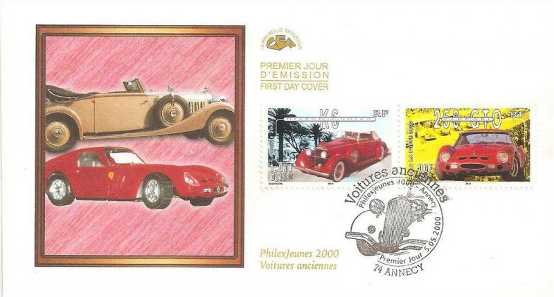 | Commentaire | Description synthétique du visuel du timbre : Dans la continuité de la feuille Armada du Siècle Rouen 1999, qui inaugurait la Collection Jeunesse, la feuille émise en 2000, à l’occasion de l’exposition Philexjeunes 2000, rend hommage aux voitures anciennes. Elle regroupe les dix voitures ayant marqué le siècle et ayant été le plus plébiscitées par les jeunes et les adhérents des associations automobiles : Bugatti 35, Volkswagen Coccinelle, Citroën Traction, Cadillac 62, Renault 4CV, Peugeot 203, Simca Chambord, Citroën DS19, Hispano-Suiza K6 et Ferrari 250 GTO. Le contour du bloc est illustré de voitures et d’accessoires évoquant l’univers de l’automobile. Les voitures sont traitées de façon réaliste et positionnées sur un fond monochrome ou dichrome évoquant l’environnement ou les évènements auxquels les Français les associent. Ce principe graphique contribue à mettre en valeur chacune des automobiles dans une ambiance très colorée. Émis uniquement en feuillet |
