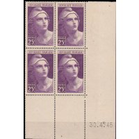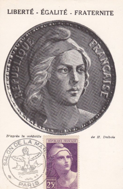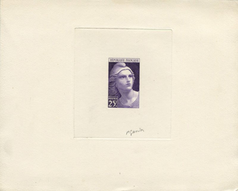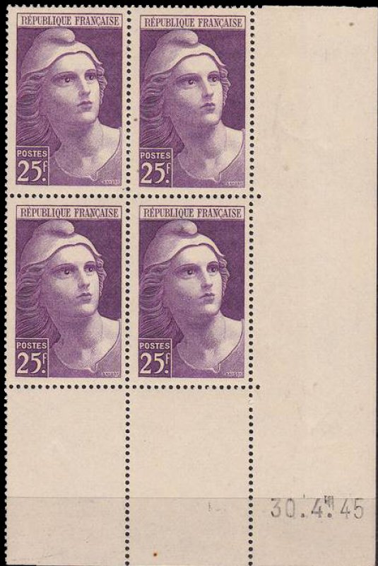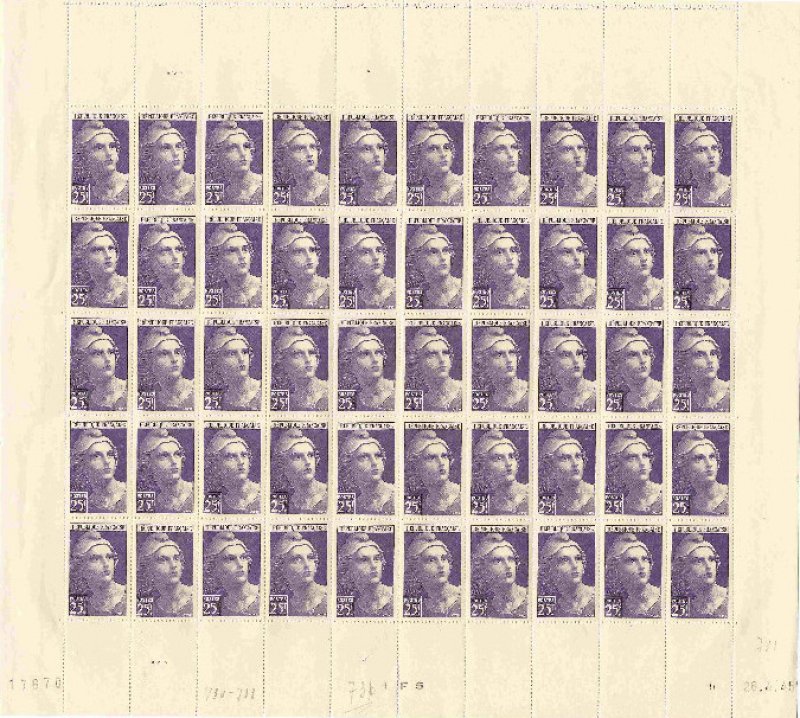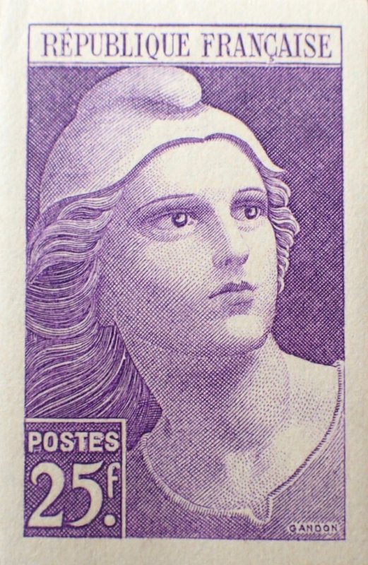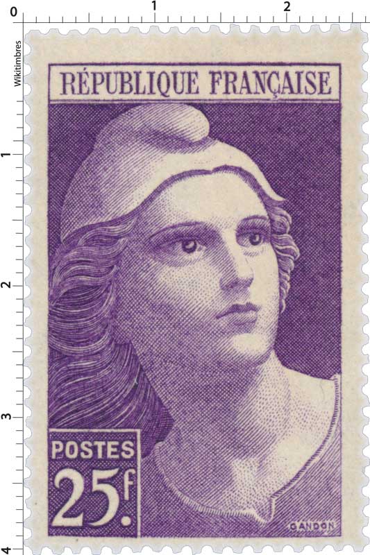 | Commentaire | Remarque : Gandon choisit son épouse Jacqueline comme modèle. Ce timbre n'était pas à l'origine un timbre d'usage courant, il remplace celui du château de "Chenonceaux" émis en juin 1944. Il était destiné aux troupes américaines en Allemagne et en Tchécoslovaquie, depuis la France, pour l'affranchissement des formules de télégrammes codés qui sont ensuite transmis par radio aux USA. Afin d'éviter toute spéculation, il est vendu comme timbre d'usage courant. |