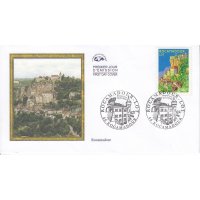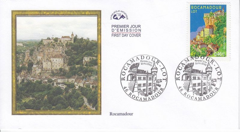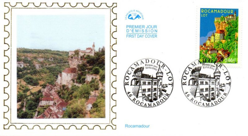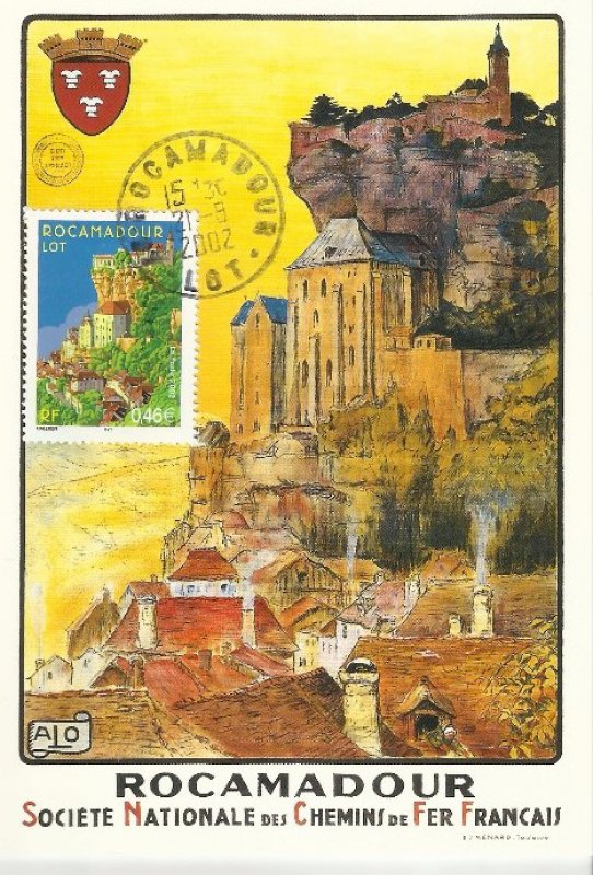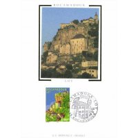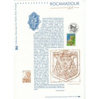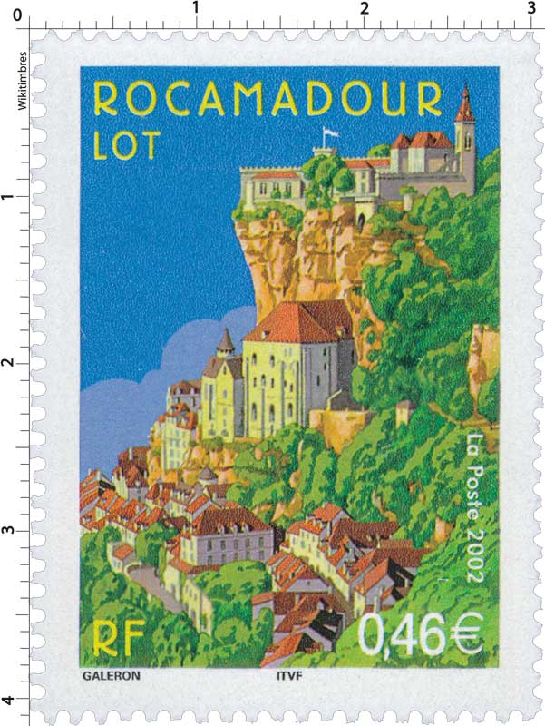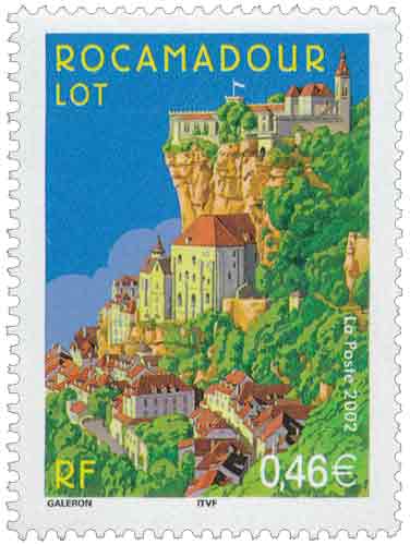 | Commentaire | Description synthétique du visuel du timbre : Rocamadour, 2e site de France, s’accroche à une falaise calcaire, en une superposition de toits bruns, de rochers et de sanctuaires, sur un pan du canyon de l’Alzou. Ce lieu très spectaculaire inspira très tôt la spiritualité et offre toujours aujourd’hui richesses historiques et expériences spirituelles. Son patrimoine, sa cité médiévale, son château dominant une falaise et son environnement en font un des 10 sites majeurs de la région Midi-Pyrénées |