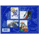 | Commentaire | BF 123 Le cachet premier jour de Stéphanie Ghinéa inscrit le titre du bloc dans les douze étoiles du drapeau européen. Il est disponible du 19 au 22 juin lors du Salon du timbre, à Paris C’est le président de la République en personne qui a choisi la nouvelle effigie de Marianne au terme d’un concours ayant pour thème Marianne et l’Europe. Il faut dire que cette nouvelle Marianne célèbre la prise par la France, non pas de la Bastille, mais de la présidence de l’Union européenne. Petite révolution, le président a souhaité associer la Marianne aux valeurs de l’Europe - paix, démocratie, environnement - au sein d’un carnet. Aux plumes, citoyens ! |