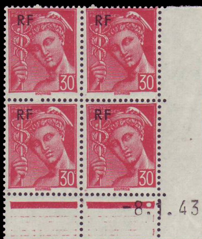 | Description | Type Mercure. Timbre de 1942 surcharge RF |