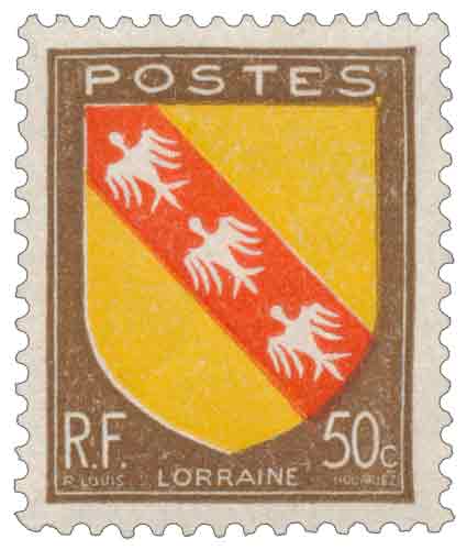 | Commentaire | Émis en France en 1946 dans la troisième série des Armoiries des provinces françaises, ce timbre gommé consacré aux armoiries de la Lorraine participe à une vaste émission destinée à l’affranchissement courant tout en diffusant une culture héraldique nationale à large échelle. Dessiné par Robert Louis et gravé par Georges Hourriez, il reproduit le blason traditionnel lorrain, à la bande d’or chargée de trois alérions, symbole ancien étroitement associé à l’histoire du duché et à son intégration progressive au royaume de France. Mis en vente générale le 5 juillet 1946, ce timbre de valeur intermédiaire est principalement destiné à l’affranchissement des journaux, usage cohérent avec son tirage très élevé et son impression en typographie, procédé privilégié pour les grandes quantités dans l’immédiat après-guerre. Par son iconographie sobre et normalisée, l’émission s’inscrit dans une série homogène visant à représenter l’ensemble des provinces françaises, la Lorraine occupant une place particulière dans l’histoire territoriale et symbolique de la France, ce que rappelle la permanence de ses armes dans l’imaginaire collectif et la philatélie de l’après-1945, notamment dans la région du Lorraine. |