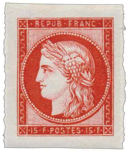| Commentaire | Ce timbre gommé français émis en 1949 commémore le centenaire du timbre-poste en France en reprenant l’effigie emblématique de Cérès, figure allégorique de la République qui ornait les tout premiers timbres français de 1849, choix hautement symbolique destiné à établir un lien direct entre la naissance de la philatélie nationale et son héritage un siècle plus tard ; intégré aux émissions commémoratives de mai 1949, ce timbre de 15 francs correspond à l’affranchissement de la lettre simple pour l’intérieur, assurant une large diffusion auprès du public tout en soulignant la portée historique de l’événement, tandis que son dessin reprend fidèlement le modèle original conçu par Jacques-Jean Barre, graveur général des Monnaies au XIXᵉ siècle ; imprimé en taille-douce rotative, ce timbre se distingue par son caractère volontairement non dentelé, rappel direct des premières émissions françaises, et par sa couleur rouge, qui renforce la filiation visuelle avec les timbres classiques de la période fondatrice, une particularité notable étant que cette émission constitue l’un des rares exemples modernes d’un timbre français non dentelé destiné à l’usage postal courant, conférant à ce 15 francs Cérès une place singulière dans l’histoire philatélique de France. |
