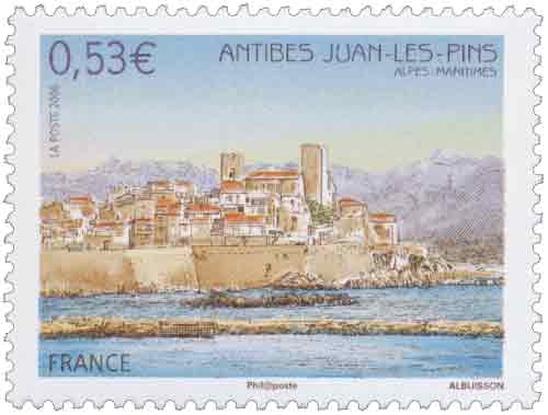 | Commentaire | Voici une vue imprenable sur le vieil Antibes pour ce timbre commémorant la ville d’Antibes Juan-les-Pins… |