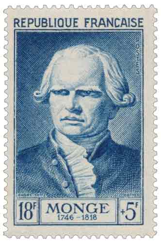| Commentaire | Émis en France en 1953 dans la série de bienfaisance « Célébrités du XIIᵉ au XXᵉ siècle » grevée d’une surtaxe au profit de la Croix-Rouge française, le timbre-poste gommé consacré à Gaspard Monge met à l’honneur l’un des plus grands scientifiques français du XVIIIᵉ siècle, fondateur de la géométrie descriptive et acteur majeur du développement des sciences appliquées ; mis en vente de manière anticipée le 9 juillet 1953 à Beaune, ville natale du savant, puis généralisé le 10 juillet dans l’ensemble des bureaux du territoire, ce timbre vertical de 18 francs correspond à l’affranchissement de la carte postale pour l’étranger, usage postal précis qui explique son intégration dans une série à vocation largement diffusée malgré son caractère caritatif ; dessiné par André Spitz et gravé en taille-douce par René Cottet, il s’inscrit dans la tradition française du portrait scientifique gravé, la taille-douce rotative assurant une lecture claire et rigoureuse du visage, en adéquation avec un sujet lié aux sciences et aux techniques ; le choix de Monge renvoie directement à son rôle fondateur dans la création de l’École polytechnique et à l’influence durable de ses travaux sur l’ingénierie, l’architecture et l’enseignement scientifique moderne, une reconnaissance institutionnelle confirmée bien plus tard par le transfert de ses cendres au Panthéon. |