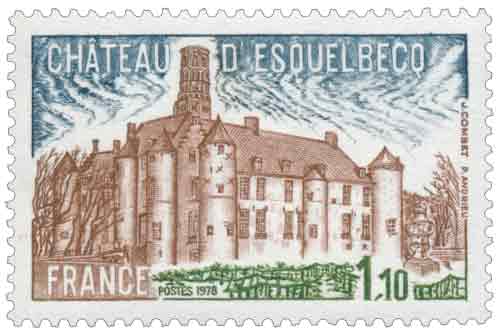 | Commentaire | Ce timbre met en lumière le château d’Esquelbecq, édifice emblématique de la Flandre intérieure, situé à Esquelbecq, dans une région où l’histoire médiévale, l’influence flamande et l’art de bâtir en brique se conjuguent depuis des siècles. L’émission de 1978 s’inscrit dans une politique postale attentive à la valorisation du patrimoine architectural régional, à une époque où la France multiplie les hommages philatéliques aux sites historiques afin d’en affirmer la diversité culturelle et territoriale. Ce timbre restitue avec précision l’allure générale du château, reconstruit au XVIIᵉ siècle sur des fondations plus anciennes, entouré de douves et caractérisé par son plan quadrangulaire, ses tourelles cylindriques et son puissant beffroi hexagonal dominant l’ensemble. L’image souligne l’harmonie des volumes et l’alternance décorative des briques claires et orangées, typiques du style hispano-flamand, tout en suggérant la fonction défensive et résidentielle du lieu. Au moment de l’émission, le château d’Esquelbecq est déjà reconnu comme un élément majeur du paysage patrimonial du Nord, ouvert à la visite et porteur d’une mémoire locale liée aux familles seigneuriales, aux conflits religieux et à l’évolution des formes architecturales de la région. Ce timbre témoigne ainsi de l’intérêt porté par la Poste française aux monuments moins connus du grand public mais essentiels à la compréhension de l’histoire régionale, en proposant une représentation fidèle, sobre et pédagogique d’un site qui incarne l’identité flamande française et la permanence du bâti ancien dans le cadre rural. Article rédigé pour WikiTimbres |