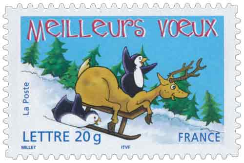 | Description | Meilleurs vœux. Renne et pingouins. Émis en carnet. 2 bandes de phosphore. |