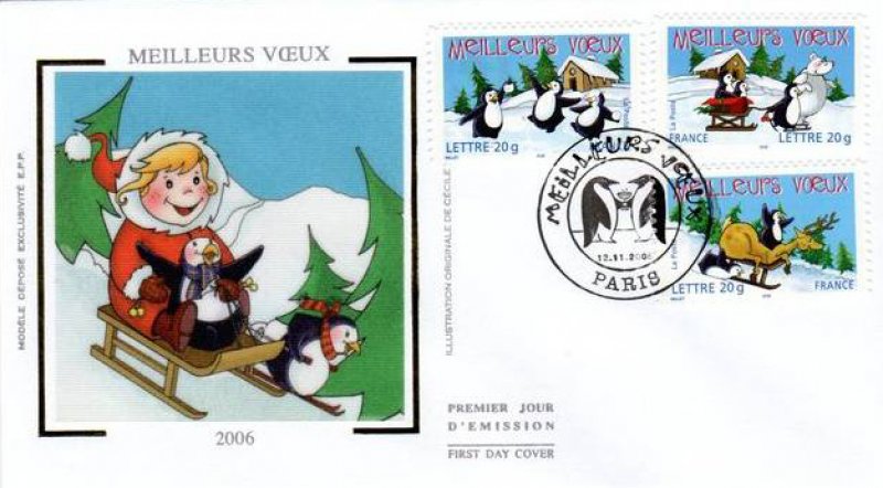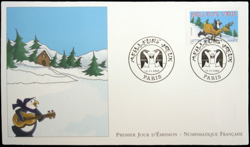 | Description | Meilleurs vœux. Renne et pingouins. Émis en carnet. 2 bandes de phosphore. |