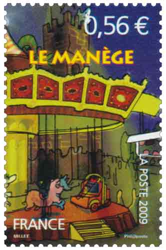 | Commentaire | La manifestation premier jour a lieu les 5 et 6 septembre à la foire aux manèges de Lille et le 5 septembre au Jardin d'acclimatation de Paris. Millet crée deux timbres à date spéciaux qui reprend le train « chenille » des montagnes russes du timbre pour Lille. À Paris, le sujet est une jeune fille chevauchant un cheval de manège |