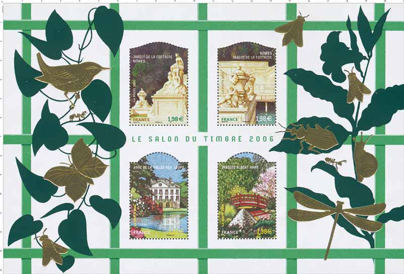 - Salon du timbre 2006. Jardins de France. Types des T.-P. de 2005 et 2006 imprimés sur feuillet de 210x143. Légende Phil@poste (au lieu d'ITVF)