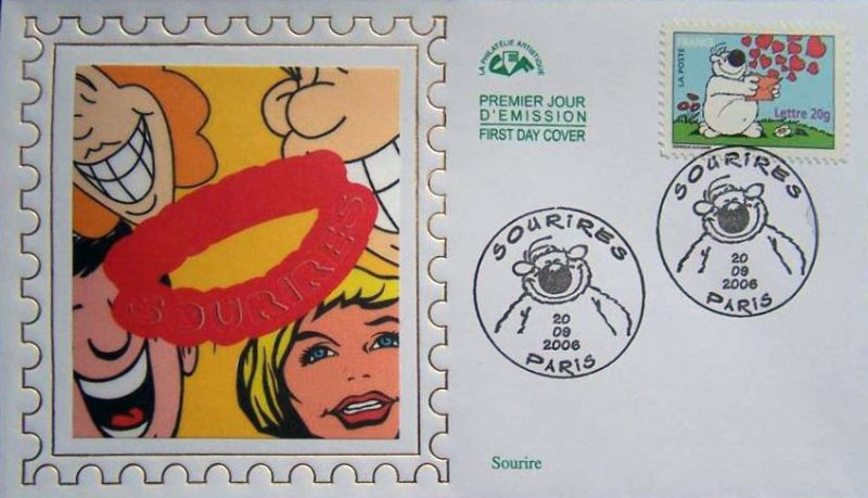 | Description | Carnet sourires : Le chien Cubitus, créé par Luc Dupanloup dit Dupa (1945 -2000), scénariste et dessinateur de bandes dessinées belge. Cubitus tenant un pli d'où s'échappent des Cœurs |