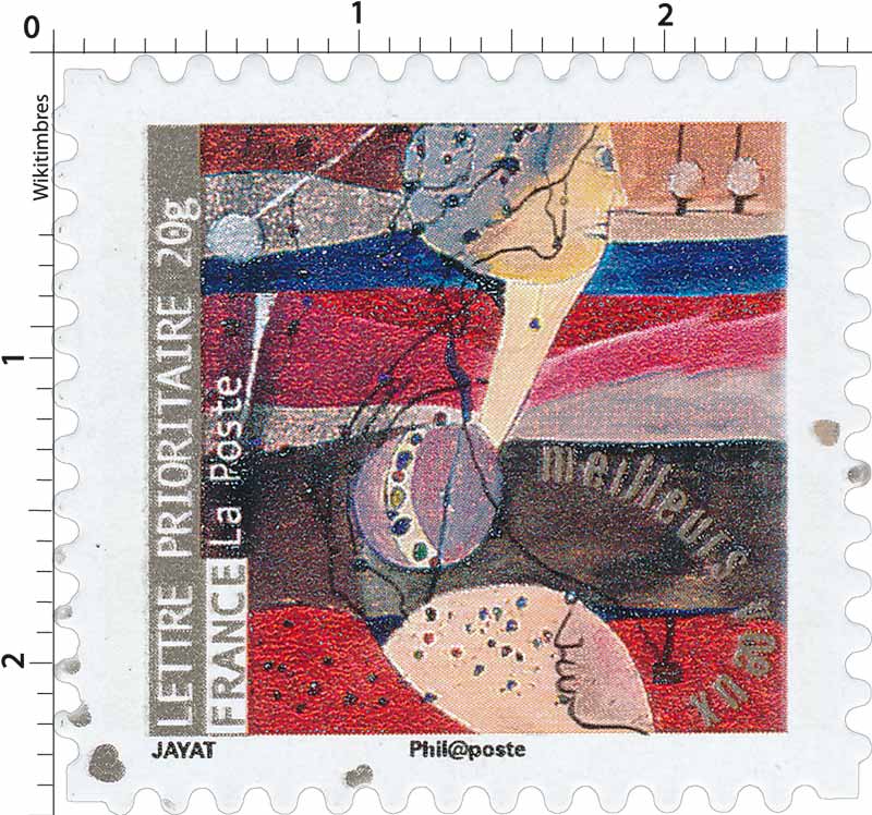 | Commentaire | La mise en vente anticipée a lieu les 7 et 8 novembre au Salon philatélique d'automne, à Paris. Le timbre à date premier jour par Marot représente une femme soufflant sur un pissenlit, les aigrettes se dispersant autour des mots-messages « Amitié, amour, bonheur, santé ». Timbre sans millésime |