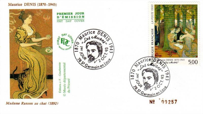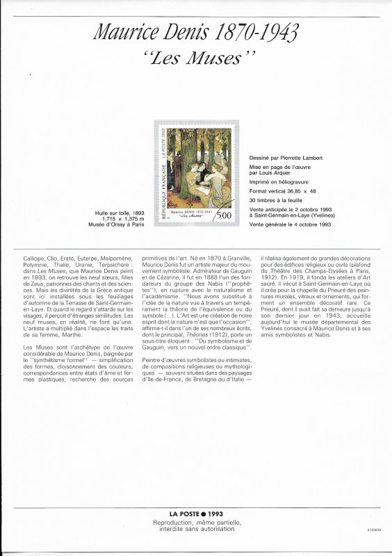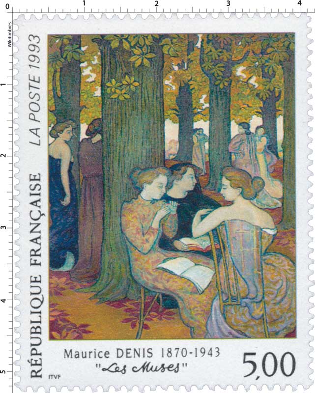 | Description | Cinquantenaire de la mort de Maurice Denis (1870-1943), peintre, décorateur, graveur et historien de l’art, né à Granville (Manche). Représentation de l'œuvre Les Muses |