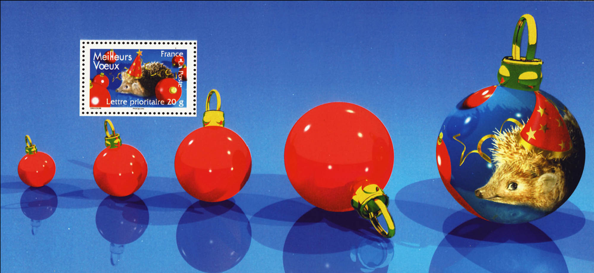 | Commentaire | MEILLEURS VŒUX Souvenir Philatélique comprenant : - une carte deux volets pliée dans laquelle est inséré - un feuillet gommé incluant le visuel du timbre « hérisson » extrait du carnet Meilleurs Vœux |