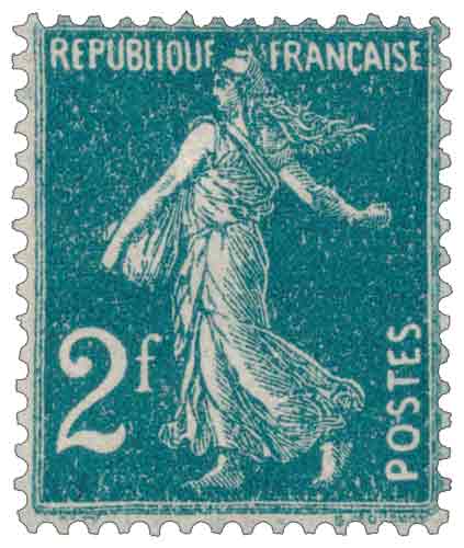 | Commentaire | Semeuse camée. Voir la vidéo "Histoires de timbres" En savoir plus sur Wikipédia : semeuse camée Mis en vente le 1er janvier 1931 et retiré en décembre 1932, le 2 francs Semeuse fond plein inscription grasse marque l’une des dernières valeurs fortes du type avant l’abandon progressif de la Semeuse dans les années 1930. Destiné principalement à l’affranchissement des envois lourds, recommandés ou internationaux, ce timbre reflète l’évolution des tarifs postaux au début de la décennie, période marquée par l’augmentation régulière du coût des services postaux. Illustré par l’allégorie intemporelle d’Oscar Roty et gravé par Louis-Eugène Mouchon, ce timbre reprend fidèlement les caractéristiques techniques du type Semeuse fond plein : fond uniforme, silhouette dynamique de la semeuse avançant « à contre-vent », et inscriptions épaissies permettant une meilleure lisibilité lors des tirages en typographie. Le format classique 20 × 24 mm et la dentelure 14 × 13½ sont conformes aux standards appliqués depuis les années 1900. La couleur vert bleu, utilisée pour cette valeur faciale élevée, est identifiable par une dominante froide, parfois sujette à de légères variations d’intensité selon les tirages. Ces nuances, rarement documentées mais recherchées par certains spécialistes, témoignent des réalités techniques de l’impression typographique du début des années 1930. Peu courant en oblitéré de qualité en raison de l’usage sur des envois lourds, souvent mal conservés, ce timbre constitue un élément essentiel pour les collections spécialisées sur la dernière phase du type Semeuse fond plein. Il s’agit aussi de l’une des valeurs les plus élevées du type avant l'arrivée des séries modernisées du début des années 1930, ce qui lui confère un intérêt philatélique durable. |