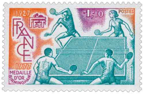 | Commentaire | Ce timbre s’inscrit dans le cadre de la politique commémorative sportive menée par la Poste française dans les années 1970, en accompagnement des fédérations nationales dont le rôle social et éducatif est reconnu. En 1977, la Fédération française de tennis de table célèbre son cinquantième anniversaire, dans un contexte de forte expansion de la discipline, tant au niveau de la pratique de masse que des résultats internationaux. Ce timbre reflète un moment charnière où le tennis de table, longtemps perçu comme un loisir domestique ou scolaire, affirme pleinement son statut de sport structuré et performant. L’émission intervient peu après un succès marquant pour le sport français, avec l’obtention d’un titre mondial en double mixte lors des championnats du monde de Birmingham, événement qui contribue à renforcer la visibilité médiatique de la discipline. Ce timbre traduit également l’essor du tennis de table dans les milieux associatifs, corporatifs et scolaires, soutenu par une organisation territoriale dense et par des actions de formation à long terme mises en place par la fédération. Le choix d’une représentation dynamique, gravée en taille-douce, met en valeur la gestuelle rapide et précise propre à ce sport, tout en s’inscrivant dans l’esthétique sobre et lisible des émissions sportives françaises de cette période. À travers ce timbre, la Poste accompagne la reconnaissance institutionnelle du tennis de table comme sport de haut niveau et de large diffusion, soulignant son rôle dans la démocratisation de la pratique sportive en France. Article rédigé pour WikiTimbres |