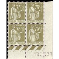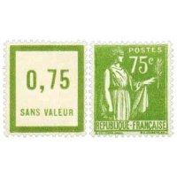 Le 75 centimes olive, émis en septembre 1932, appartient aux valeurs intermédiaires de la série « Paix » initiée à la demande d’André Tardieu pour renouveler les timbres d’usage courant autour d’une iconographie pacifiste forte. Le dessin de Paul-Albert Laurens montre la République apaisée tenant rameau et épée au fourreau, tandis que la gravure d’Antonin Delzers, très précise malgré les aplats délicats de la typographie, confère au motif une remarquable lisibilité. Particularités philatéliquesOn rencontre plusieurs nuances d’olive, du vert olive foncé au jaune-olive plus clair, issues des différents bains d’encre typographiques. La valeur est courante neuve mais plus délicate à trouver parfaitement centrée. Le retrait tardif, intervenu le 18 février 1941, explique sa présence fréquente sur plis de la période de guerre malgré une émission très antérieure. |