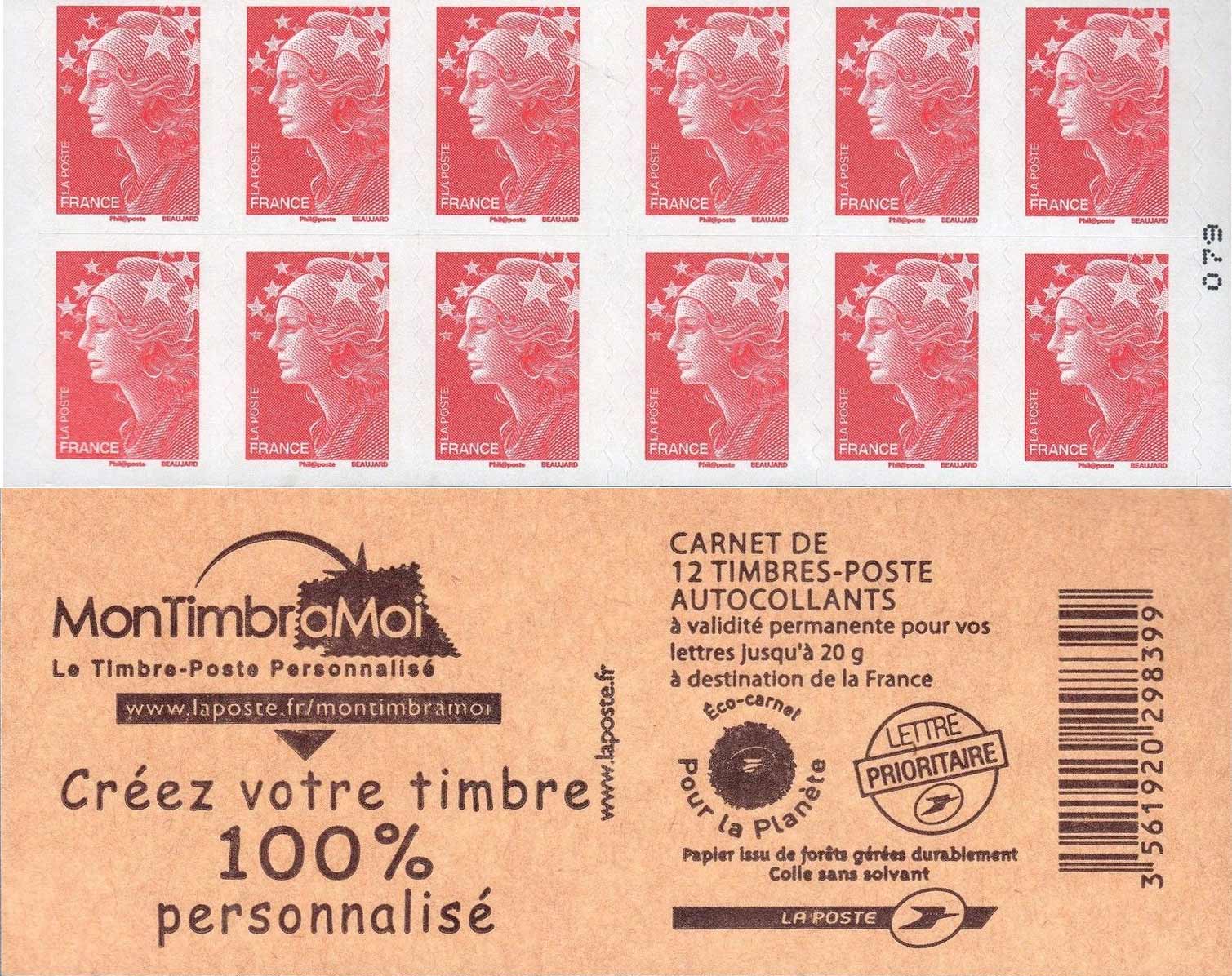 | Description | Carnet Marianne - Couverture “MonTimbraMoi”- 12 TP lettre 20 g |