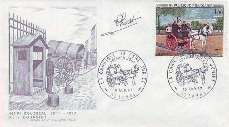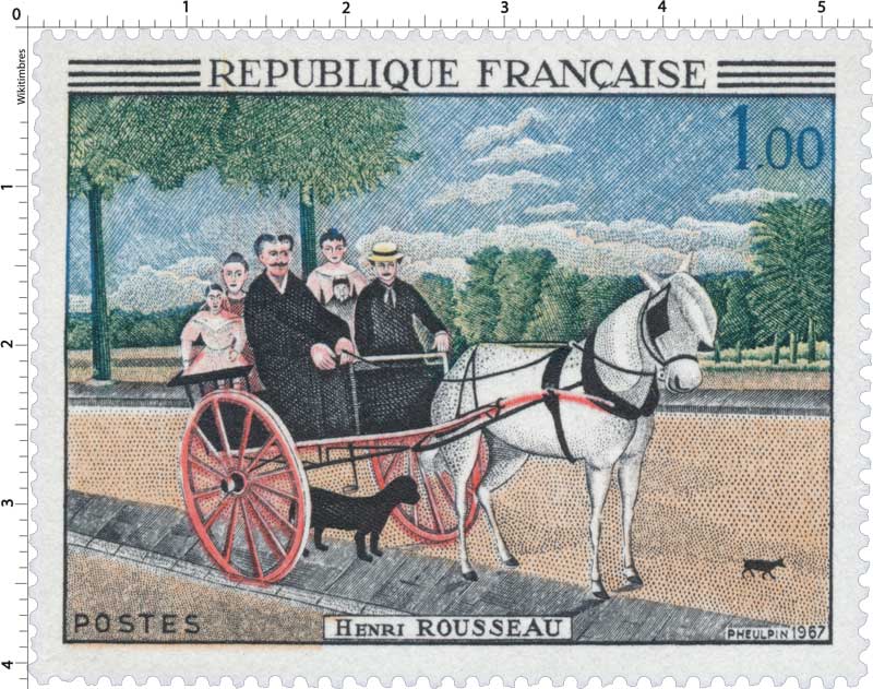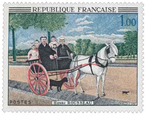 | Commentaire | Il y a des artistes qu’on admire pour leur technique… et puis il y a ceux, plus rares, qu’on aime pour leur sincérité brute. Henri Rousseau, alias "le Douanier", appartenait sans doute à cette seconde espèce. Naïf ? Peut-être. Mais aussi farouchement libre, comme un rêveur obstiné qu’aucun sarcasme n’a jamais réussi à dérouter. Né à Laval en 1844, Rousseau n’a jamais vraiment suivi les sentiers battus. Après un passage dans l’armée, il devient commis à l’Octroi de Paris. Pas franchement une vie d’artiste, hein ? Et pourtant. Dans le secret de ses soirées, il peint. Sans école, sans formation, sans complexe. Et ses toiles – jugées "folles", "enfantines", parfois même risibles – finissent par intriguer les esprits les plus aiguisés du moment : Apollinaire, Picasso, Max Jacob… Même Renoir finit par dire : « curieux comme ça repousse les gens, quand il y a du vrai talent ! » Rousseau crée un univers à lui. Des jungles luxuriantes sans avoir jamais quitté Paris. Des animaux surgis d’un imaginaire foisonnant. Des portraits figés dans une étrangeté touchante. Parmi ses tableaux les plus célèbres, La Carriole du Père Juniet (1908) — peinte d’après une simple photo d’épicerie — capte cette magie du banal sublimé. Une scène ordinaire, transformée en poésie silencieuse. Ce qui frappe, chez lui, c’est peut-être ça : ce mélange d’innocence, d’intuition et de malice cachée. À sa mort en 1910, il laisse une œuvre en marge, unique, fondatrice. Aujourd’hui encore, difficile de dire s’il était un génie malicieux ou un poète lunaire… mais ce qui est sûr, c’est que personne ne l’a jamais vraiment remplacé. WikiTimbres |
